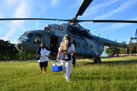 Para tal fin, la SEMAR a través de la Tercera Región Naval desplegó 232 elementos navales, así como 24 unidades terrestres y 1 ruta aérea, que se integraron a las brigadas para realizar labores de distribución, resguardo y apoyo en los 8 puntos de aplicación que quedaron a cargo de Marina, con una aplicación de 3 mil 380 vacunas.