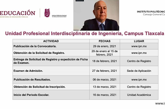 La convocatoria se publicó a partir del 29 de enero y de manera simultánea en las páginas oficiales del IPN: http://www.ipn.mx/ y de la Secretaría de Educación Pública del Estado de Tlaxcala (SEPE) https://www.septlaxcala.gob.mx/, así como en las redes oficiales de la dependencia, a fin de que los jóvenes consulten los requisitos de admisión.