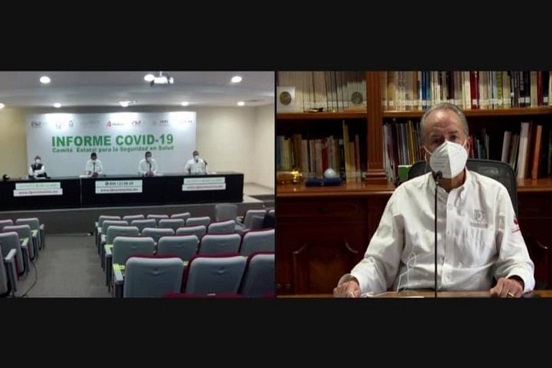 El Secretario de Salud, Miguel Ángel Lutzow Steiner, dijo que se revisaron todos los indicadores por lo que “estamos en una situación crítica con una epidemia con gran intensidad de transmisión y hospitalizaciones, estamos en zona roja, es decir, con máximo riesgo de contagio, lo que se confirma esta tarde por la secretaría de salud federal, estamos en el quinto día con este reforzamiento adelantado de las medidas de prevención”.