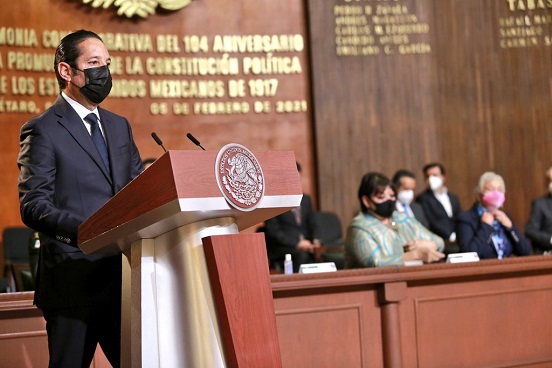 “Mandemos una imagen de cooperación a las y los mexicanos. Nos une a todas y a todos, un gran amor por México”, expresó en su mensaje durante la ceremonia conmemorativa del 140 Aniversario de la Promulgación de la Constitución Política de los Estados Unidos Mexicanos de 1917.