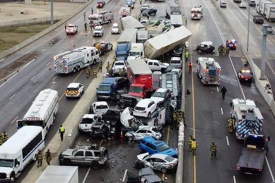 El masivo accidente tuvo lugar a lo largo de un tramo de casi kilómetro y medio Interestatal 35W en la ciudad de Fort Worth en Texas, y fue reportado a las 06:00 horas locales.