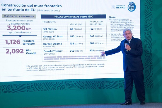 «Estamos muy de acuerdo en que se cancele la construcción del muro. Es un tema que celebramos porque el muro se ha venido construyendo desde hace algún tiempo (…) han construido sus tramos de muro tanto los presidentes demócratas como los presidentes republicanos», dijo López Obrador.