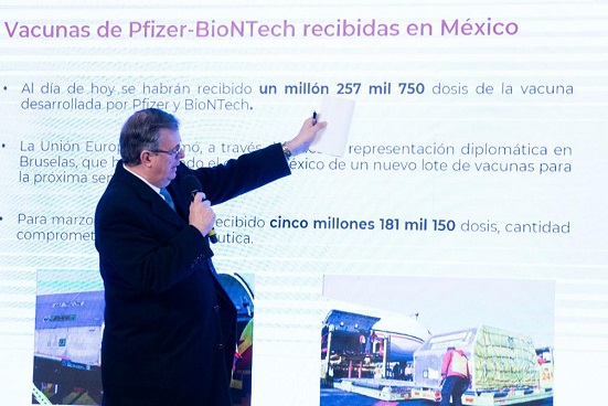 En tanto a AstraZeneca, el canciller indicó que el gobierno mexicano le compró 77.4 millones de dosis y con Pfizer se pre compraron 34.4 millones de vacunas para 17.2 millones de personas debido a que se requieren dos dosis.