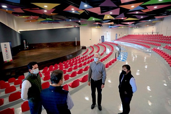 “Ésta es una de las 53 obras que hemos entregado a lo largo de todo el Estado de México para promover la cultura, el deporte, las actividades familiares, que además nos ayudan mucho a prevenir también violencia, a prevenir delincuencia y a involucrar a los jóvenes, a las familias, a las actividades recreativas, culturales, de deporte, como es este Auditorio”.