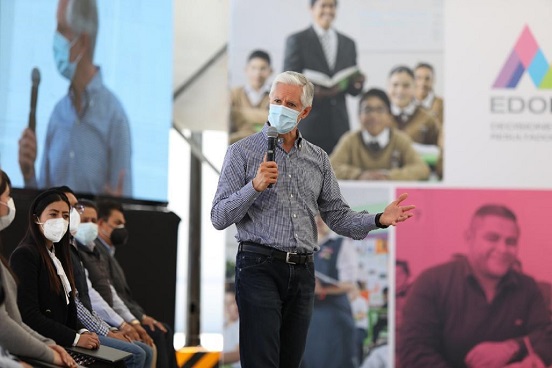Alfredo Del Mazo manifestó que durante la pandemia no se ha detenido el impulso de la infraestructura educativa de la entidad, y la administración estatal continúa con el mantenimiento, construcción de nuevos espacios, equipamiento y rehabilitación de planteles educativos, para que cuando se retornen a las clases presenciales, los alumnos cuenten con una infraestructura sólida y fuerte.