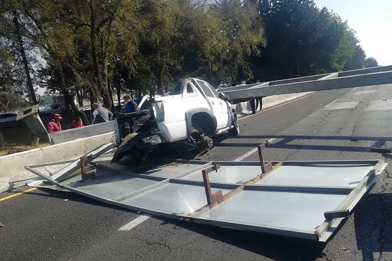 La Secretaría de Movilidad, a través de la Junta de Caminos informó que, derivado de un accidente automovilístico en el que fue derribado un señalamiento tipo puente en Paseo Tollocan, resultó lesionado el conductor de una camioneta particular.