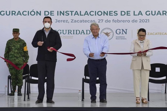 En el municipio de Jerez de García Salinas, el presidente Andrés Manuel López Obrador inauguró el primero de cuatro cuarteles de la Guardia Nacional que se instalarán en Zacatecas.