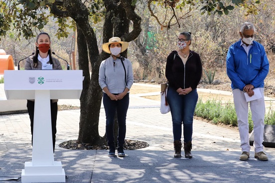 “Es fundamental saber de dónde venimos en nuestra historia prehispánica, de la Colonia, la Independencia, la Reforma, la Revolución, hoy la Cuarta Transformación, pero también es fundamental que conozcamos cuál es la historia natural del lugar de donde vivimos. Y particularmente, este espacio es un espacio único, el Parque Ecológico de la Ciudad de México, es una zona en donde la vegetación que crece aquí es una vegetación asociada desde hace cerca de 2 mil años a lo que fue la explosión del Xitle”, añadió Sheinbaum Pardo.
