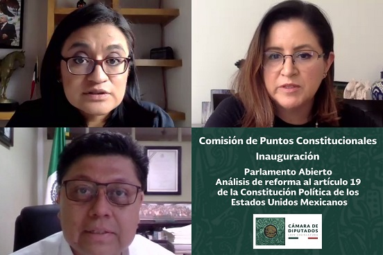 En el Parlamento Abierto virtual “Análisis de la reforma al artículo 19 de la Constitución Política de los Estados Unidos Mexicanos, para incorporar los delitos de extorsión y ambientales a aquellos que ameritan prisión preventiva oficiosa”, diputadas y diputados fijaron postura sobre el tema.