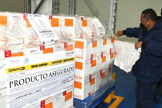 El embarque que llegó el pasado 27 de febrero con las 800 mil vacunas de Sinovac, procedentes de China, se trasladó a los almacenes de Birmex, donde permaneció resguardado en condiciones de seguridad bajo custodia de elementos del Ejército Mexicano y la Guardia Nacional.
