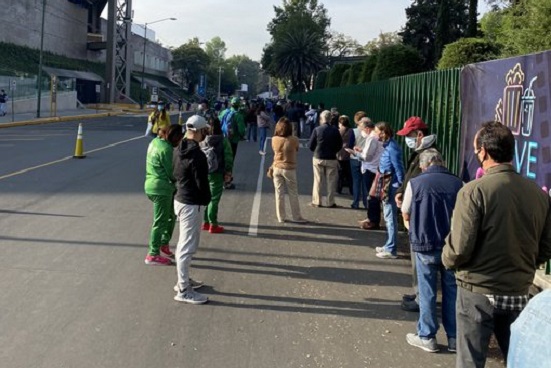 Varios usuarios en redes sociales reportan que hasta el momento, la fila de personas que esperan ser inyectados llega hasta el Auditorio Nacional, ubicado a unos 350 metros del lugar.