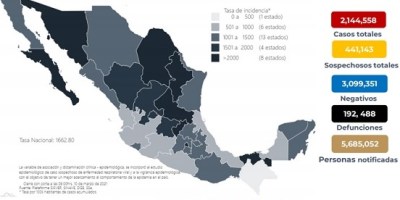 Ssa reporta 6 mil 674 nuevos casos Covid-19 y llegan a 192,488 las defunciones