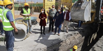 Junto con vecinos Gaby Gamboa supervisa obra de drenaje en Casa Blanca