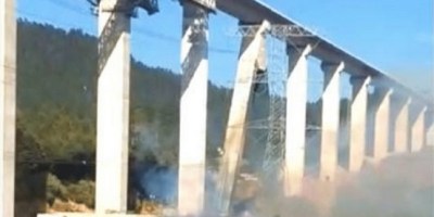 Dejan caer estructuras del tren interurbano; provocan incendio