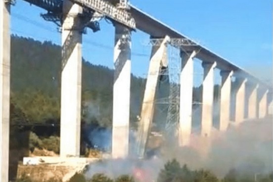 Trabajadores del Tren Interurbano México-Toluca dejaron caer, en forma accidental, dos estructuras, este martes, las cuales pegaron en los cables de alta tensión y provocaron un incendio en la zona.