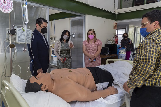 Con la directora Gloria Ángeles Ávila y personal académico y administrativo realizó un recorrido por las instalaciones de la Facultad de Enfermería y Obstetricia para identificar las necesidades más inmediatas de esta comunidad.