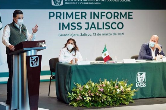 Durante el informe de la Representante del IMSS en Jalisco, Maestra Edith Bermúdez Alonzo, al que acudió el gobernador Enrique Alfaro Ramírez, el director general del Seguro Social señaló que la voluntad política ha permitido enfrentar la emergencia sanitaria, desde la parte médica, detección de casos, atención ambulatoria y hospitalaria.
