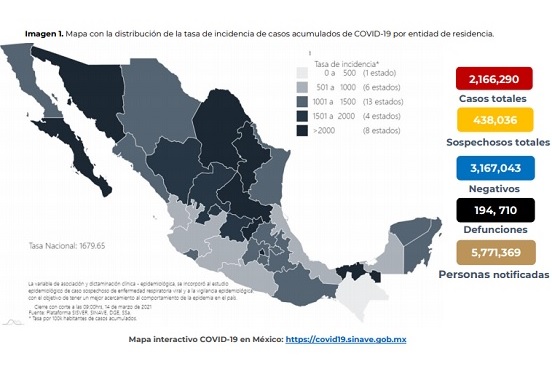 Sobre el comportamiento de la pandemia en el país, el reporte indica que hoy se confirmaron 220 fallecimientos, para un acumulado de 194 mil 710. Los casos confirmados incrementaron en 2 mil 415 para un acumulado de 2 millones 166 mil 290.