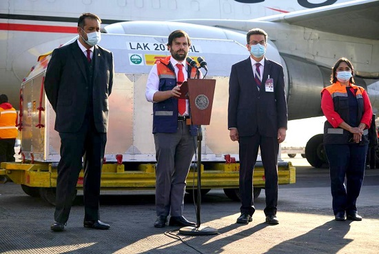 Un total de 667 mil 857 dosis de la vacuna contra el COVID-19 de Pfizer-BioNTech llegaron este martes a México.