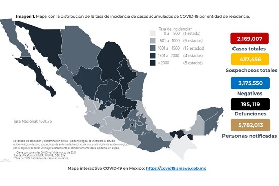El reporte sobre el comportamiento de la pandemia indica que hoy se confirmaron 175 fallecimientos para un total de 195 mil 119 personas que han perdido la vida por complicaciones graves de Covid-19. Los casos confirmados crecieron en mil 278 para un acumulado de 2 millones 169 mil 7.