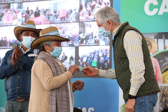 “Hoy estamos haciendo la primera entrega a 2 mil 800 mujeres y hombres del campo del Estado de México que van a recibir esta tarjeta por primera vez. Y queremos que esto les sirva para incrementar la productividad que tienen en sus tierras” precisó.