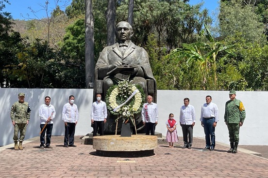 Durante la conmemoración, el jefe del Ejecutivo depositó una ofrenda y montó una guardia de honor en el monumento dedicado a honrar la memoria del presidente Benito Juárez.