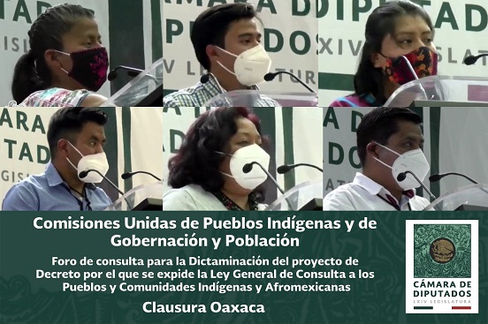 Al concluir el foro para la dictaminación de la Ley General de Consulta a los Pueblos y Comunidades Indígenas y Afromexicanas, que se llevó a cabo en Santa Lucía del Camino, Oaxaca, los participantes expresaron la necesidad de que este ordenamiento informe a las regiones de los beneficios y afectaciones de los proyectos u obras.