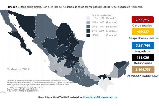 También destacó que los casos activos ascienden a 35 mil 515, los cuales representan uno por ciento del total de personas que han tenido el padecimiento. En tanto que los recuperados son 1 millón 736 mil 159 personas.