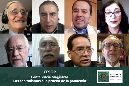 El Centro de Estudios Sociales y de Opinión Pública (CESOP) de la Cámara de Diputados, presentó el libro “Los capitalismos a la prueba de la pandemia”, de Robert Boyer, investigador del Institut des Amériques, Paris, Francia, quien impartió una conferencia magistral para dar a conocer sus consideraciones ante los retos de la emergencia sanitaria a nivel de salud, social, economía y gobernanza.