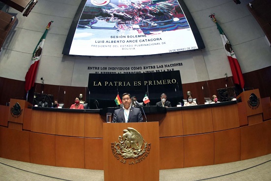 En sesión solemne del Senado de la República, se recibió este miércoles la visita del presidente del Estado Plurinacional de Bolivia, Luis Arce Catacora, en donde al dirigir un mensaje se refirió a la pandemia por Covid-19 y sus implicaciones económicas, al llamar a los organismos internacionales generar acciones dirigidas a un alivio de la deuda externa de los países del mundo en desarrollo.