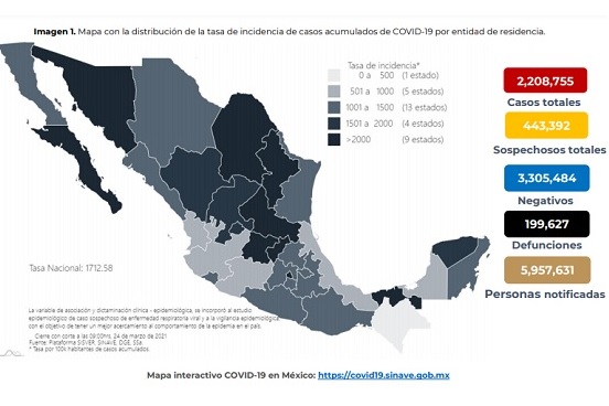 Los casos confirmados incrementaron en 5 mil 714 para un acumulado de 2 millones 208 mil 755.