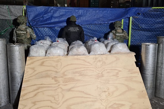 Derivado del trabajo conjunto de la Unidad Naval de Protección Portuaria No. 62, adscrita a la Sexta Región Naval, con personal de la Aduana de Manzanillo y la Fiscalía General de la República (FGR), se realizó la inspección no intrusiva por parte del vehículo de Rayos “X” detectando la mercancía ilícita que se ocultaba en una máquina trituradora para reciclado de materiales, cuyo destino era China.