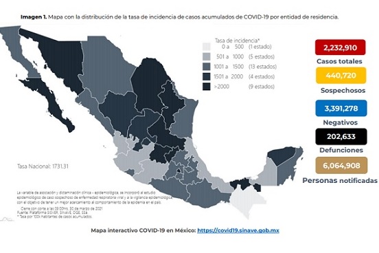 Durante la conferencia vespertina para hablar de la situación de la pandemia en el país, se informó que hasta hoy se tienen confirmadas 202 mil 633 muertes por esta causa, 807 defunciones más que la víspera. Los casos confirmados incrementaron en 5 mil 68 para un acumulado de 2 millones 232 mil 910.