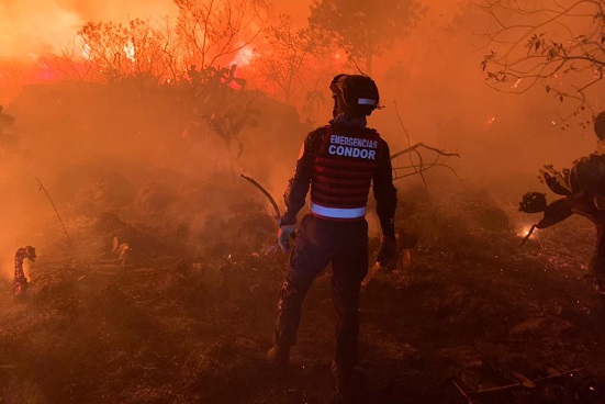 En las inmediaciones de la Universidad Pedagógica «se implementaron líneas húmedas para evitar que se propague a las instalaciones de la institución», dijo Protección Civil a través de redes sociales.