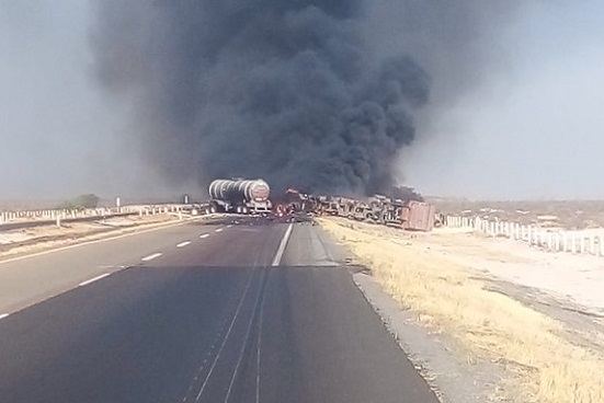 Minutos después antes de las 10 de la mañana la autopista Saltillo-Torreón tuvo que ser cerrada tras el choque de dos unidades pesadas que provocaron un fuerte incendio ya que un tráiler transportaba 66 mil litros de combustible en dos pipas.