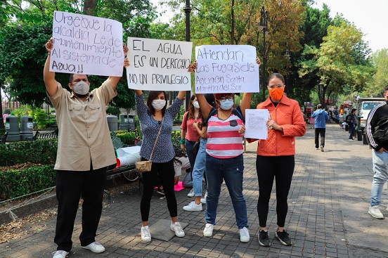 Encabezados por la aspirante para alcaldesa, Patricia Urriza Arellano, los inconformes de las colonias Santo Domingo, CTMC Culhuacán IX y X, Santa Martha del Sur, Candelaria y Barrio San Lucas, tomaron las calles del centro de la alcaldía solicitando solución inmediata a la falta de este recurso natural, de vital relevancia ante la situación sanitaria por COVID19 que nos afecta.