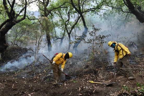 Para sofocar el fuego se conformó una mega brigada integrada por 281 elementos, así como por tres equipos aéreos de la Comisión Nacional del Agua (CONAGUA) y de la Secretaría de Defensa Nacional (SEDENA), los cuales realizaron vuelos de reconocimiento y 351 descargas de agua, equivalentes a poco más de 390 mil litros del recurso hídrico. Cabe destacar que el agua fue mezclada con espuma retardante y fue dispersada en los frentes más críticos del incendio con el fin de dispersar el calor en las zonas donde los combatientes forestales no pudieron ingresar.