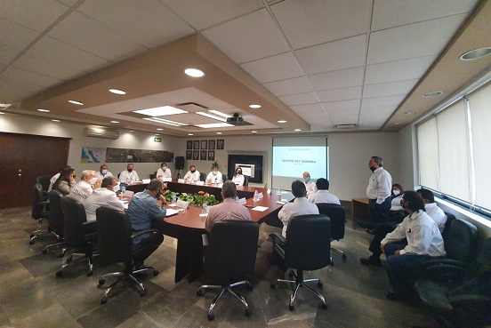 El secretario de Comunicaciones y Transportes, Ing. Civil Jorge Arganis Díaz-Leal sostuvo una reunión de trabajo con directivos y funcionarios del Centro SCT en Sonora.