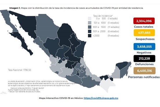 Christian Zaragoza Jiménez, director de Información Epidemiológica, informó que los decesos confirmados por Covid-19 se incrementaron en 535, con un acumulado de 212 mil 228, mientras que los casos estimados se mantienen en una tendencia a la baja, con menos 11 por ciento en comparación con la semana epidemiológica previa. Los casos confirmados incrementaron en 4 mil 157 para un acumulado de 2 millones 304 mil 96.