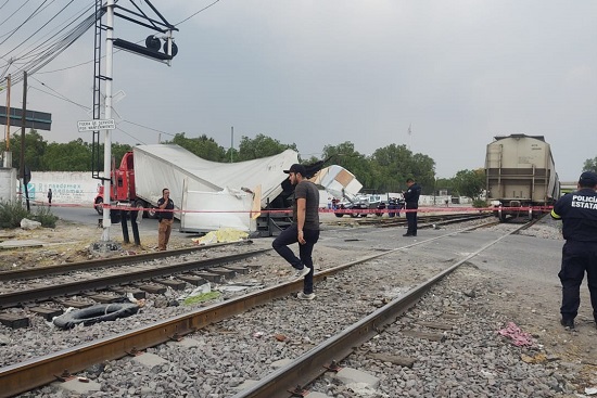Al menos una persona murió después de que un tráiler fuera embestido por un tren al querer ganarle el paso en Ecatepec, Estado de México.