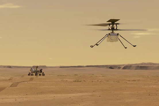 En un breve video grabado desde el rover Perseverance, se podía ver al helicóptero de 1,8 kilogramos volando tres metros sobre la superficie marciana, y luego volviendo a tierra firme.