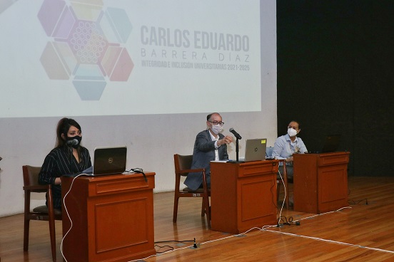 Agregó que -de ser favorecido con el voto del H. Consejo Universitario de la UAEMéx el próximo 14 de mayo- se promoverá la participación en las actividades de investigación y se evitarán sesgos de género en la producción científica y tecnológica. Durante la Jornada de Promoción y Comparecencia Institucional, Barrera Díaz recibió propuestas por escrito de tres centros de investigación para fortalecer estas tareas dentro de la UAEMéx.