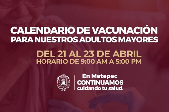En una tarea conjunta, el municipio de Metepec en coordinación con el gobierno federal, anunciaron la aplicación en esta demarcación, exclusivamente de la segunda dosis contra el COVID-19 para adultos mayores.