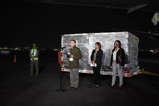 Este embarque es la primera entrega de un total de 51.5 millones de dosis contratadas al mecanismo multilateral Covax, para inmunizar a 25.75 millones de personas.