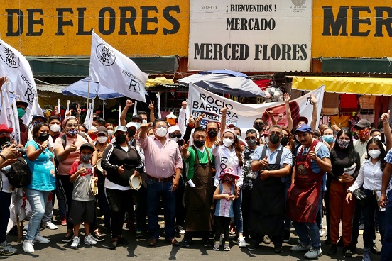 Rocío Barrera, candidata de la coalición “Vamos por Venustiano Carranza” presentó en la nave mayor de la Merced, su propuesta para dignificar los 42 mercados públicos de la demarcación, mejorar su infraestructura y dar certeza jurídica a los propietarios de los locales.