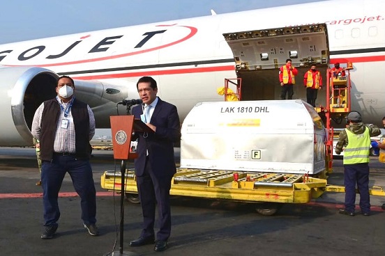 Las vacunas recibidas hoy, sumadas a las de anteriores embarques de esta farmacéutica, hacen un total de 10 millones 660 mil 065 dosis.