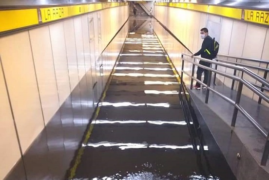 Uno de los accesos a la estación presentó la afectación con cerca de un metro de altura de agua que se filtró dentro.