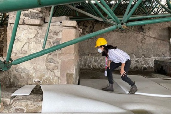 Al respecto, la jefa de Restauración del MTM, Mariana Díaz de León Lastras, indica que “el reto es quitar la techumbre sin dañar nada arqueológico, y que se coloque la nueva estructura de manera inmediata, ya que los vestigios no pueden quedar a la intemperie”.