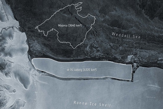 Los científicos vigilaban desde hacía varios días este enorme bloque de hielo bautizado A-76, que empezó a separarse de la barrera de Ronne el 13 de mayo, según el Centro Nacional de Hielo de Estados Unidos.