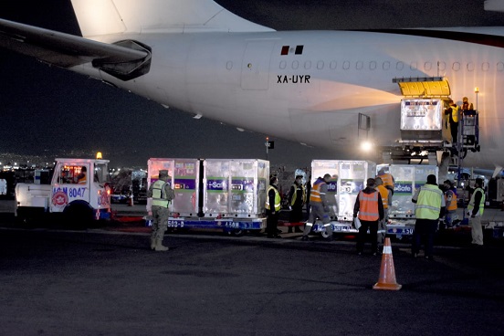 Este jueves por la noche, México recibió un nuevo embarque de vacunas envasadas contra COVID-19 de la farmacéutica AstraZeneca, con un millón 394 mil 800 dosis, lo que permitirá avanzar en la inmunización a lo largo del país.